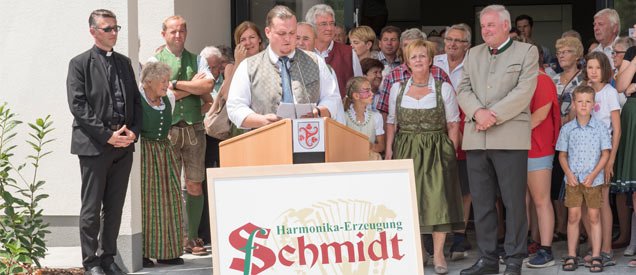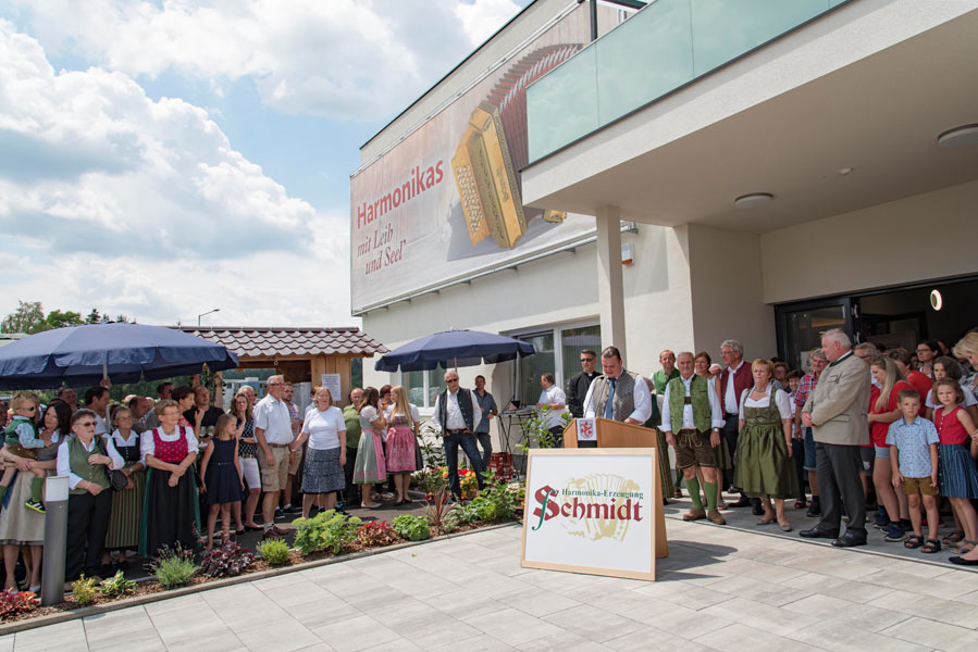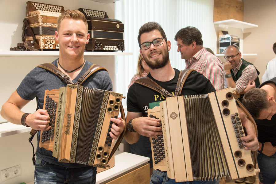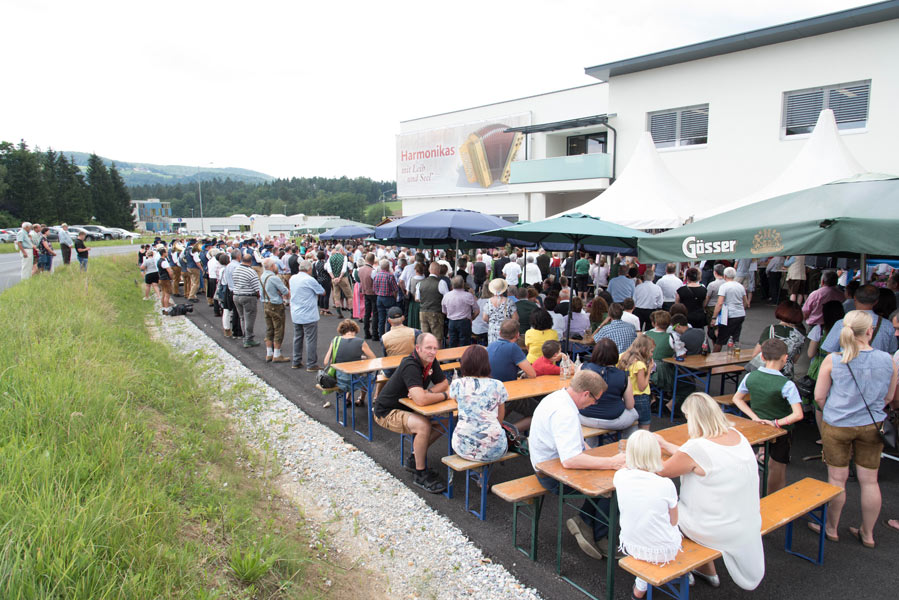 Das Beste kommt nicht immer erst zum Schluss und so haben wir den Tag bereits zu Beginn mit dem ORF Frühschoppen eingeläutet. Perfekt, um das Fest zu starten und die Stimmung aufzulockern. Im Anschluss an die Eröffnungsrede stand es jedem frei, das neue Betriebsgebäude genauer unter die Lupe zu nehmen und sich von unserem Team beraten und erklären zu lassen, was alles bei der Herstellung einer echten Steirischen Harmonika beachtet werden muss. Es durfte getestet, gespielt und begutachtet werden. Und unsere kleinen Gäste? Die tobten mit bemalten Gesichtern über das Gelände und konnten sich in der Hüpfburg so richtig auspowern.