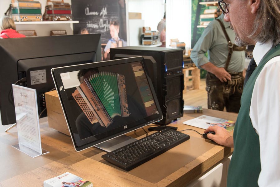 Reges Interesse fand auch unsere Weltneuheit - unser einzigartiger 3-D Harmonika Designer (ab August wird dieser auch auf unserer Website zu finden sein), mit dem man vorab seine ganz persönliche Traum-Harmonika online zusammenstellen kann, bevor es letztendlich an die Herstellung geht.